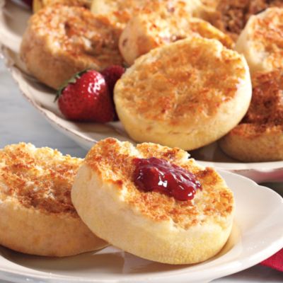 My day is off to such a wonderful start that I thought I would share it with you. A friend sent us a basket of goodies from Wolferman's and if you love English muffins, you would faint at the sight of these. They are huge and the texture and taste are sensational. They come in a variety of flavors such as multigrain, 1910 original, cinnamon raisin, sourdough and wild Maine blueberry.  Paradise delivered via your toaster.